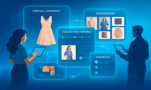 Planen, betrachten und verwalten Sie Ihre Kollektionen virtuell. Teilen Sie Updates, geben Sie Feedback und verfolgen Sie den Fortschritt über ein zentrales Dashboard.